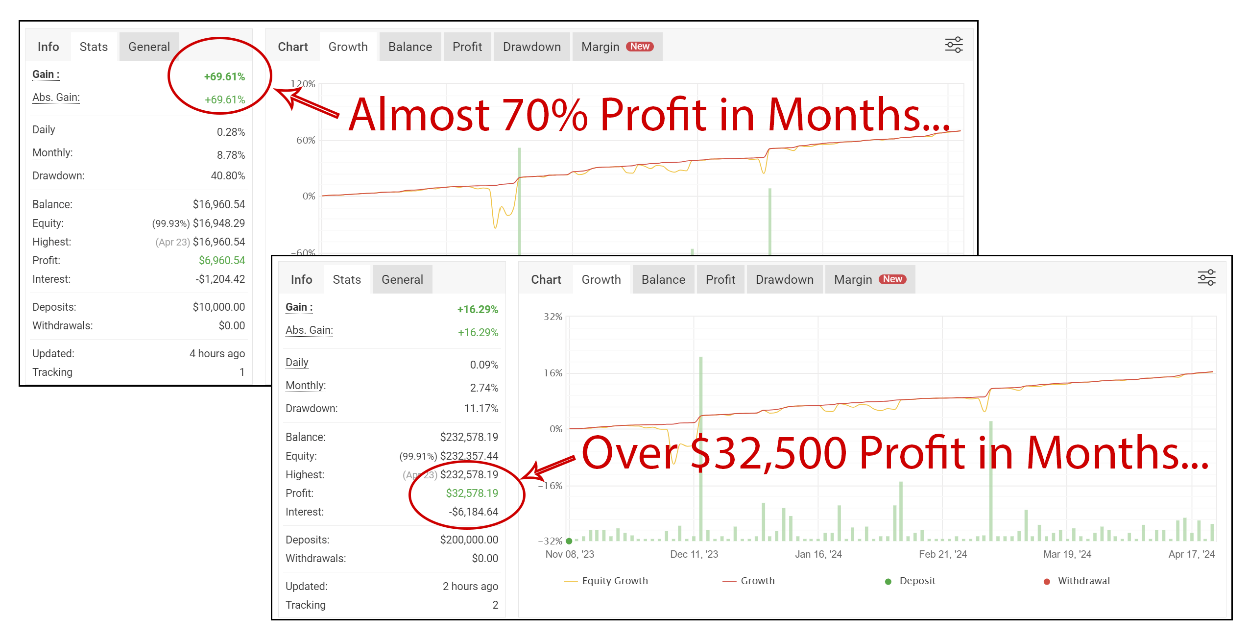 We provided our investor access details to them to verify the account. You can click the link below this box to see the verified stats and trading history...